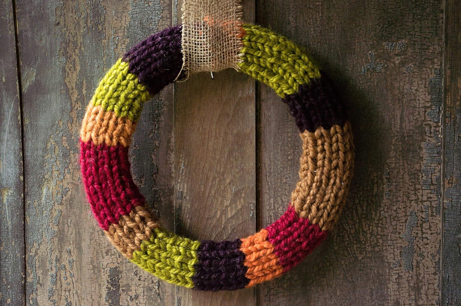You’ll never vacuum another pine needle with this tree-free DIY from Recaptured Charm. Take a foam wreath and some green yarn to create your own version of the classic Christmas decoration. Add painted pinecones and a few glittery branches if you like to complete the look. Check out this Autumn Stripes Chunky Knit Farmhouse Country Wreath with rustic Frayed Burlap Ribbon.